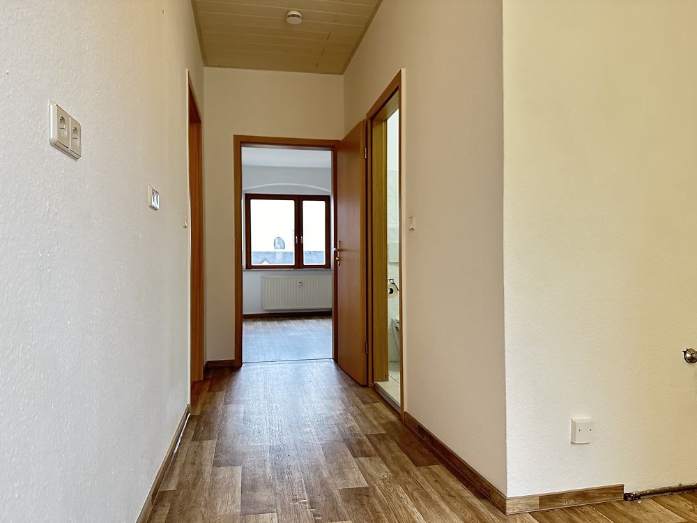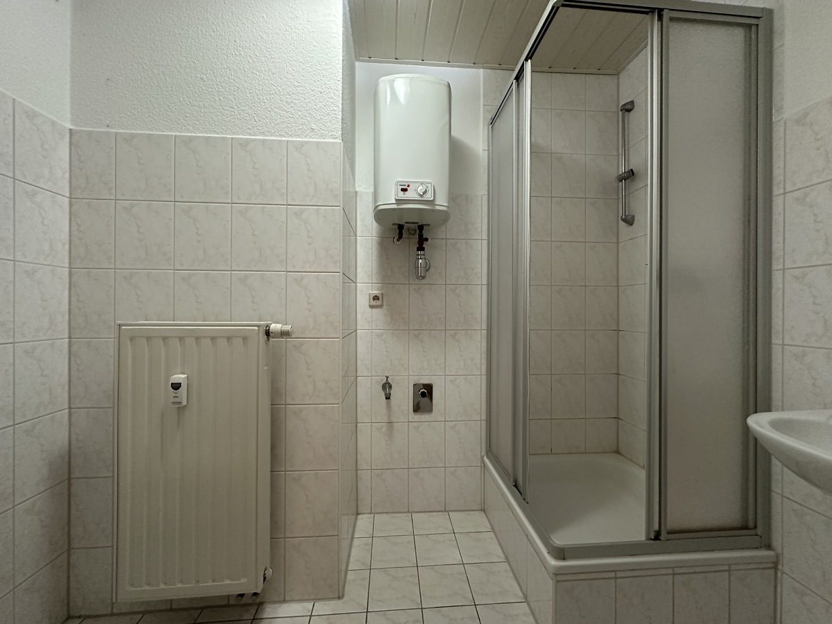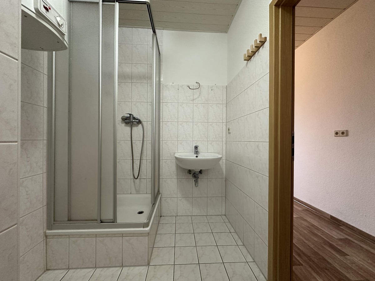 Die Wohnung ist komplett saniert. Sie ist ausgestattet mit Küche, Schlaf- und Wohnzimmer sowie mit einem Badezimmer mit Dusche.